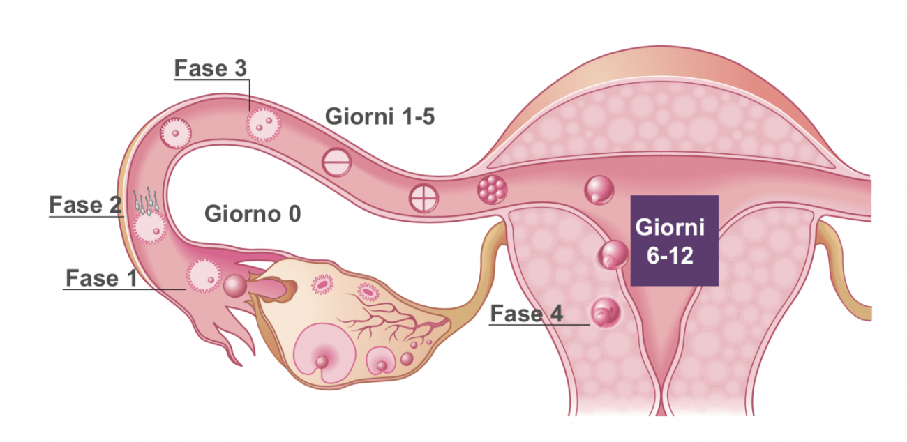 In questa immagine possiamo osservare le 4 fasi principali dell’inizio di una gravidanza: